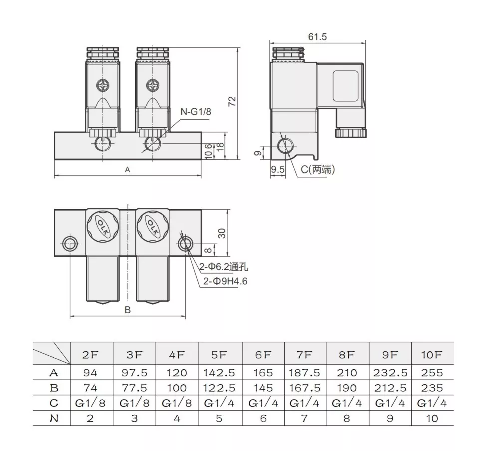 โซลินอยด์วาล์ว 2V025 มากถึง 10 ชิ้นสามารถสร้างวาล์วร่วมได้