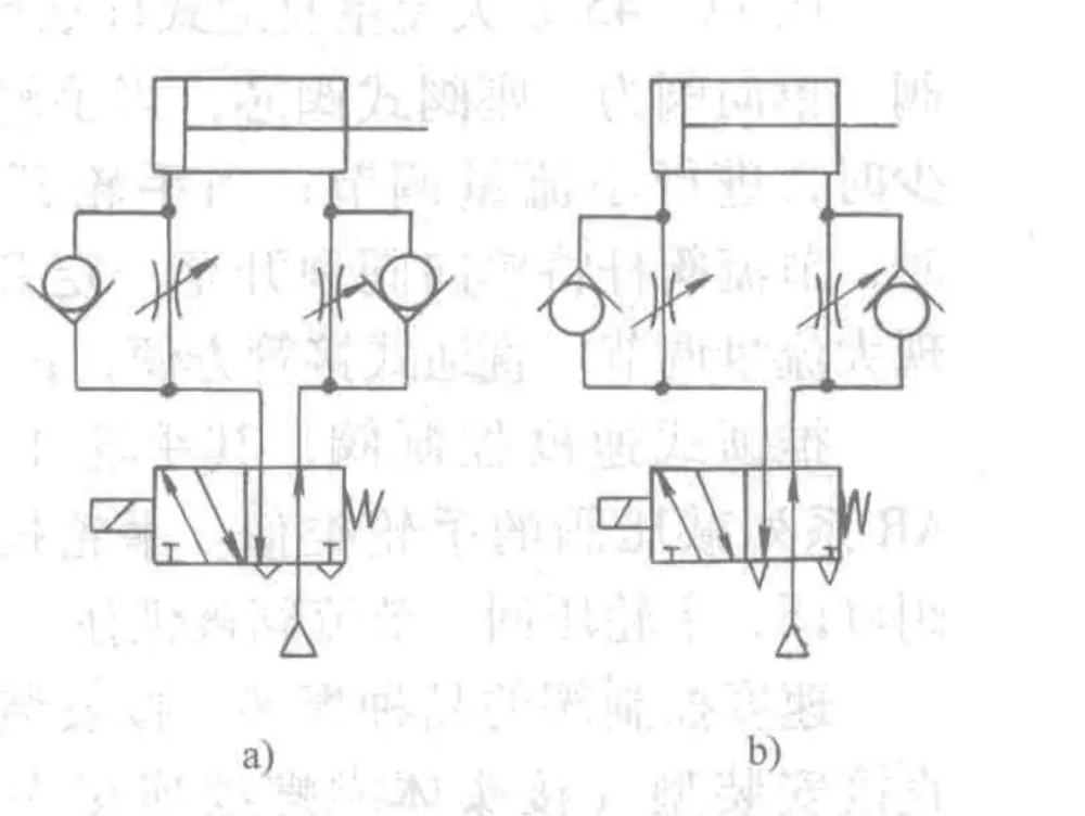 - แผนภาพแสดง 2 วิธีในการเชื่อมต่อวาล์วควบคุมความเร็วในวงจรนิวแมติก