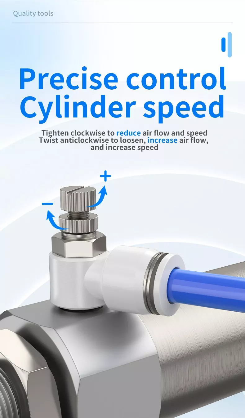 มีให้เลือกทั้งแบบควบคุมทางเข้าและไอเสีย สามารถติดตั้งวาล์ว SL บนกระบอกสูบได้โดยตรงเพื่อประหยัดฟิตติ้ง, ท่อและเวลาติดตั้ง การออกแบบที่หมุนได้ช่วยให้วางแนวท่อได้อย่างยืดหยุ่น และล้อปรับพร้อมกลไกการล็อคช่วยให้มั่นใจในการควบคุมการไหลที่ดีและมีเสถียรภาพ
