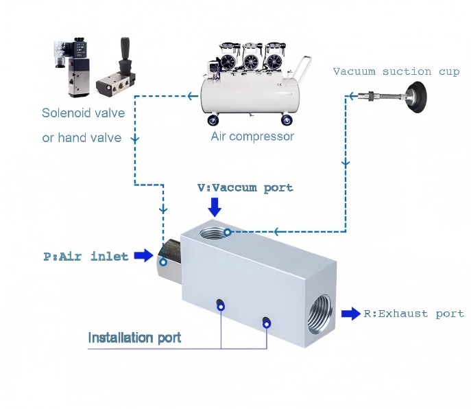 เครื่องกำเนิดสุญญากาศเป็นส่วนประกอบสูญญากาศขนาดเล็กที่มีประสิทธิภาพ สะอาด ประหยัด รูปแบบใหม่ที่ใช้แหล่งอากาศแรงดันบวกเพื่อสร้างแรงดันลบ ทำให้ง่ายและสะดวกมากในการรับแรงดันลบในสถานที่ที่มีอากาศอัดหรือในสถานที่ที่ต้องใช้ทั้งแรงดันบวกและลบในระบบนิวแมติก