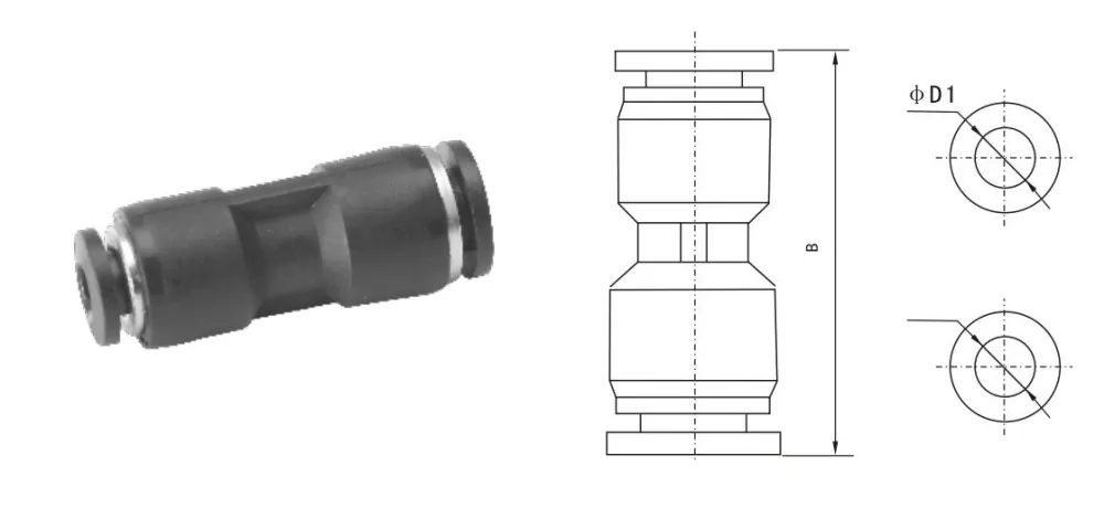 PU เชื่อมต่อท่ออากาศเดียวกันทั้งสองด้าน PG เชื่อมต่อท่ออากาศกับเส้นผ่านศูนย์กลางที่แตกต่างกันทั้งสองด้าน
