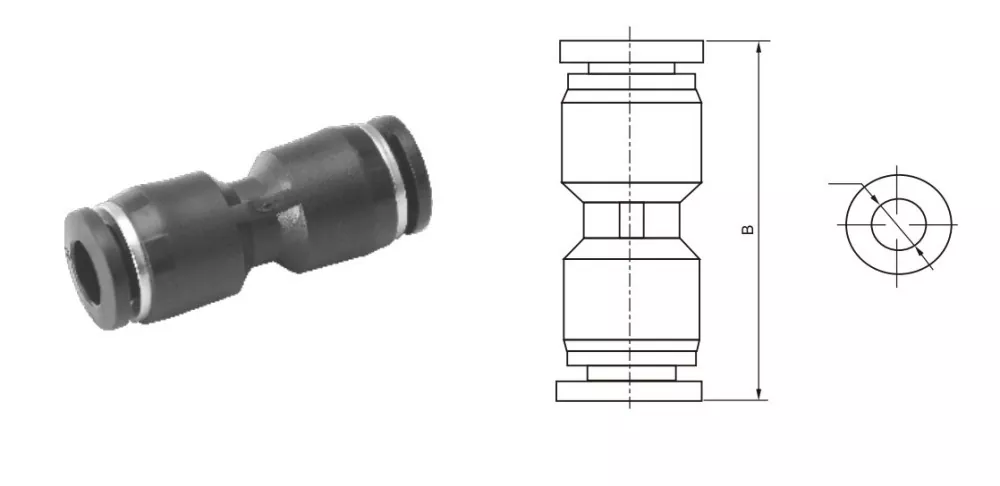 PU Union Straight Push in Tube Vitting คือการออกแบบตัวเชื่อมต่อแบบ push-to-connect สำหรับใช้กับท่อ PU (โพลียูรีเทน) ในระบบนิวเมติก