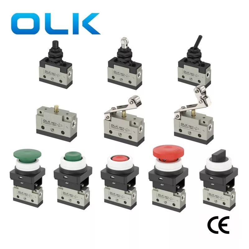 OULEIKAI (OLK) VM132, VM133Series 3/2 วิธีวาล์วกลไกนิวเมติก 3 ทางด้านล่างพอร์ตก้นปุ่มกดปุ่มกดปุ่มวาล์วควบคุม Buttom PortedPiping Direction และ Thunger Long/Short Plunger.m5